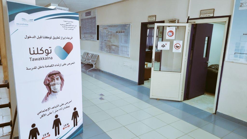 وشهدت المدارس تركيب ونشر ما يزيد عن 100 ألف ملصق ولوحة توعوية تم نشرها على الأبواب والمداخل والممرات والفصول والطاولات الدراسية لتطبيق الإجراءات وتعزيز التباعد خلال اليوم الدراسي.