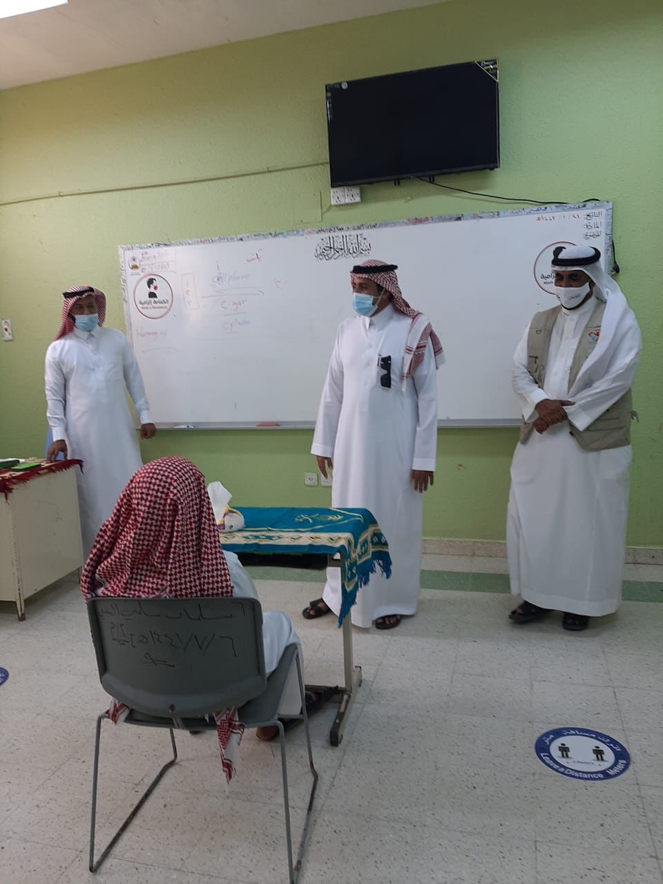 استقبل مدير مدرسة السقيد الابتدائية والمتوسطة محمد بن أحمد عقيلي والمعلمون ورئيس وحدة النشاط بمكتب تعليم محافظة جزر فرسان الأستاذ محمد عثمان مهدي صباح اليوم الأحد رئيس مركز السقيد الأستاذ / إبراهيم مدخلي وذلك أثناء زيارته للمدرسة للاطمئنان على سير الدراسة والإجراءات الاحترازية التي تم عملها من قبل إدارة المدرسة وقد اطلع مدير المركز على خطط المدرسة التي تم عملها لإنجاح العام الدراسي، وقال مدير المركز سرني جدًا ما شاهدته من تفاني الكادر التعليمي والتنظيم للعملية التعليمية التي تتلائم مع الاأوضاع الراهنة وتفعيل الإجراءات الاحترازية وفق تطلعات وزارة التعليم وأيضا ارتياح الطلاب للعودة إلى مقاعد الدراسة متمنينيًا للجميع التوفيق والعون.