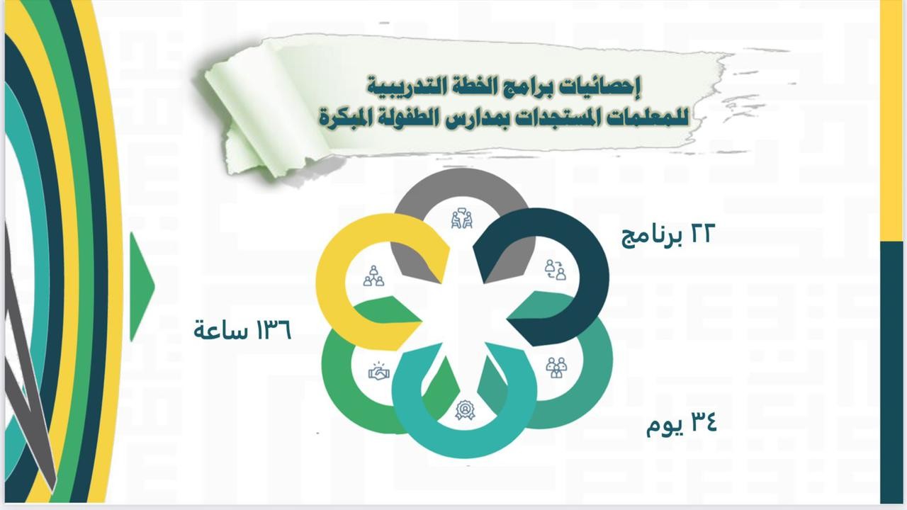 يجدر بالذكر أن الخطة استهدفت 613 معلمة مستجدة في مداس الطفولة المبكرة وقد وصل عدد الحضور في اليوم الأول 410 معلمة تم تدريبهن وفق أفضل الممارسات التدريبية العالمية عبر قاعات افتراضية باستخدام ZOOM