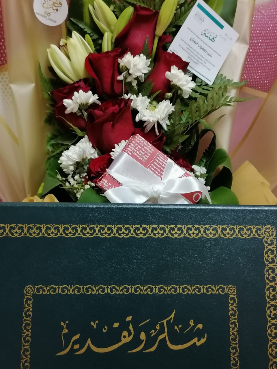 وتقدم ولي أمر الطالبه - يعقوب الهزاع بالشكر الجزيل لإدارة المدرسة بقيادة المديرة والمساعدات الإداريات وأعضاء هيئة التدريس في المدرسة العاشرة المتوسطة بالمبرز. لاهتمامهم بالطالبات واحتضان مواهبهم.
