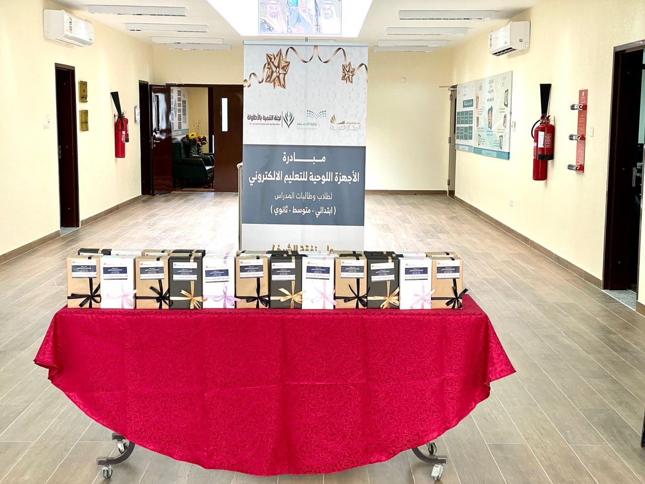 ضمن برامج الشراكة المجتمعية بين لجنة التنمية بالأطاولة ومكتب التعليم بالقرى وبحضور وتشريف محافظ القرى هزاع بن ناصر بن قرملة تم صباح الاثنين 6 صفر 1443هـ تدشين مبادرة الأجهزة اللوحية للتعليم الالكتروني بدعم من رجل الأعمال الشيخ / معيض بن رداد.