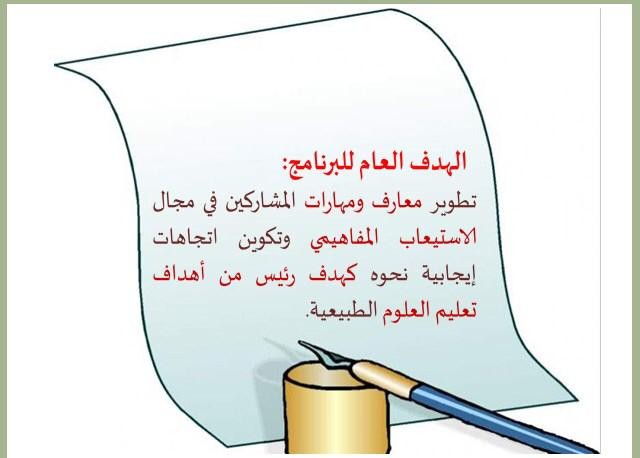 نفذتها مشرفات العلوم الطبيعية: أشواق اليماني، رنين مراد ، نافعة سالم تحت إشراف مديرة المكتب غزيل الثبيتي، بهدف تطوير معارف ومهارات المشاركات من معلمات العلوم الطبيعية في مجال الاستيعاب المفاهيمي وتكوين اتجاهات إيجابية نحوه كهدف رئيس من أهداف تعليم العلوم الطبيعية، وتجويد أداء معلمات العلوم من خلال توضيح المعايير المهنية للمعلمات، و إدراك أهمية التحول في تدريس العلوم من السطحية إلى التعلم المبني على الفهم العميق والاستيعاب الحقيقي للمعرفة.