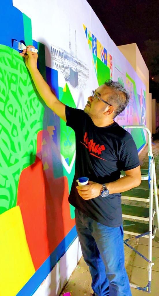 الفنان زاهد سيامك والمشارك بالمعرض وبالجدارية أبان : " اليوم نستذكر ملحمة من البطولات لهذة الدولة الفتية والتي جعلت كتاب الله وسنة نبيه دستوراً لها وحق علينا أن نفتخر جميعاً بهذا الوطن وهذه القيادة الحكيمة التي قادتنا لأن ننافس كبرى الدول في العالم" .