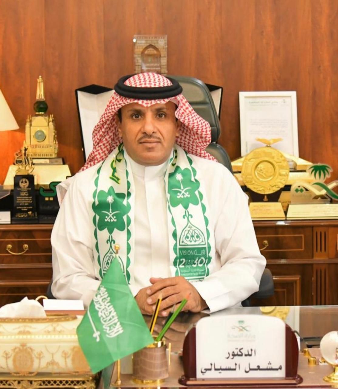 وإننا إذ نعتز ونفخر بالمستوى الرفيع الذي حققته خدماتنا الصحية، فإننا نؤكد أن هدفنا كان دائماً ترسيخ مشاركتنا الجادة في برامج النهضة الوطنية الشاملة التي تشهدها بلادنا، وأخيراً نجدد العهد مرة أخرى لقيادتنا الرشيدة لتحقيق المزيد من الإنجازات، كل عام وبلادنا تعانق المجد في ظل قيادة حكيمة، كل عام وبلادنا عزيزة وشامخة، كل عام ووطنا آمناً مطمئناً سخاءً رخاءً بإذن الله.