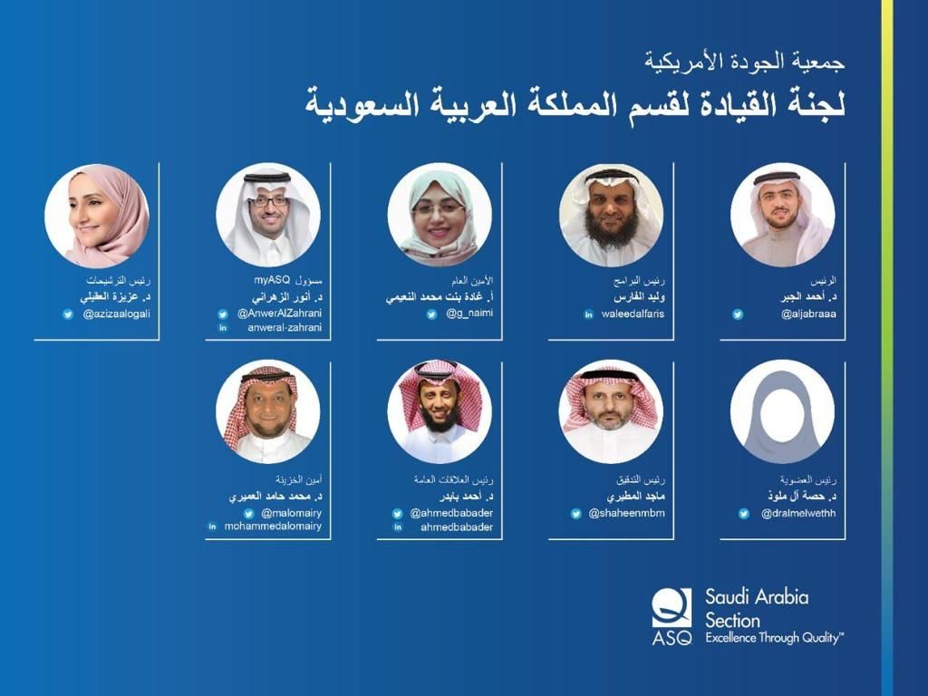 قيادة القسم السعودي في الجمعية الامريكية للجودة تهنئ القيادة الرشيدة
