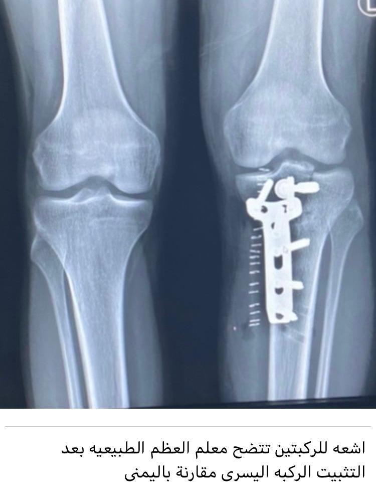 وذكر أن هذه الحالة لشاب في العشرين تعرض لحادث سير دراجة نارية , وهي من الحوادث التي تنتج عنها مثل هكذا كسور ولحسن الحظ لم تؤثر الكسور على الاعصاب، والأوردة والشرايين، إلا أنها أخلت بثبات المفصل، وهشمت الغضروف وأصبح التدخل الجراحي حتمياً لرد الكسر، واستعادة قوام المفصل بشكل سريع قبل التئام المفصل بشكل معيق أو تحرك الكسور نحو الخلف حيث منطقة الشريان الرئيس للرجل مؤكداً بأنه قد تم إجراء العملية  لتثبيت الكسور بشكل دقيق رغم خطورة التدخل الجراحي، وحتمية استخدام القطع الجراحي خلف المفصل مباشرة للتعامل الأمثل مع الكسر، وتثبيته بشكل يضمن سلامة المفصل لهذا الشاب ، وتمت العملية بنجاح بحمد الله وتوفيقه.