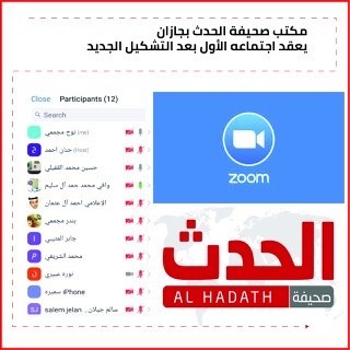 عقد مكتب صحيفة الحدث بجازان مساء الجمعة 20/8/1442ه -02/04/2021 م عبر منصة (zoom) اجتماعه الأول عقب التكليفات الجديدة في عدد من أقسام المكتب حيث أصدرت إدارة الإقليم بالمنطقة الجنوبية قراراً بتكليف الأستاذ بندر مجممي مديراً لمكتب الصحيفة بجازان ورئيساً للتحرير وتكليف الأستاذة حنان البيشي نائباً لمدير التحرير بمكتب جازان وتكليف الأستاذ حمزة عقيبي مديراً للعلاقات العامة بمكتب الصحيفة بجازان كما أصدرت قراراً بتكليف الأستاذ سالم جيلان مشرفا للقسم الرياضي بالمنطقة الجنوبية.
