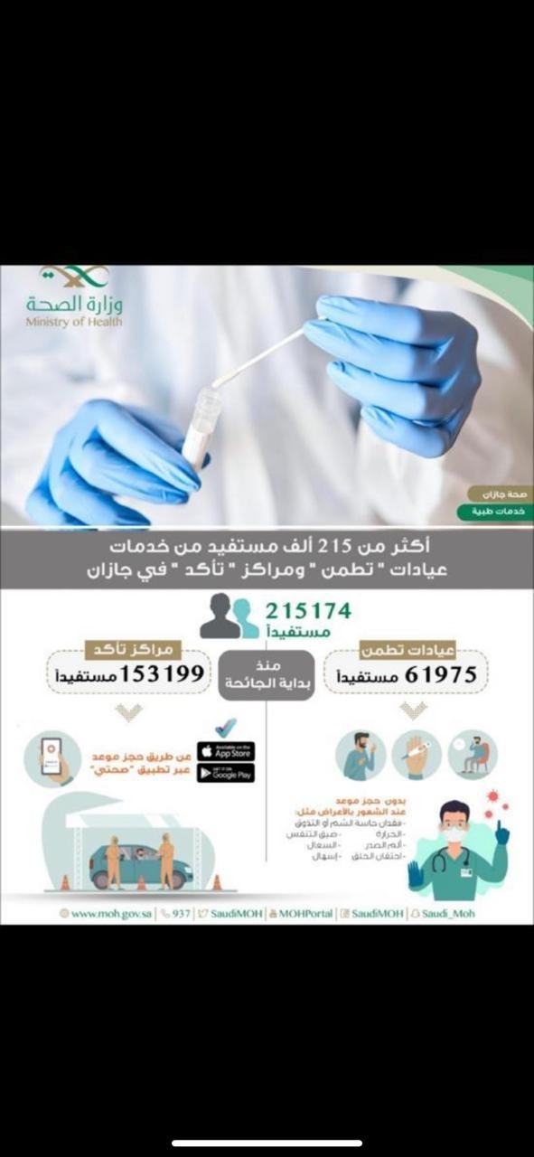 قدّمت عيادات "تطمن" ومراكز "تأكد" في منطقة جازان، خدماتها لـ215174 مستفيدًا منذ بدء العمل فيها حتى الآن.