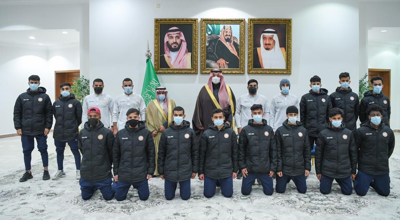 استقبل الأمير فيصل بن خالد بن سلطان أمير منطقة الحدود الشمالية في ديوان الإمارة , رئيس مجلس إدارة نادي عرعر علي السويلم يرافقه اللاعبون والجهاز الإداري والفني بمناسبة صعود النادي لدرجة الشباب - تحت 19 سنة - للدوري الممتاز.