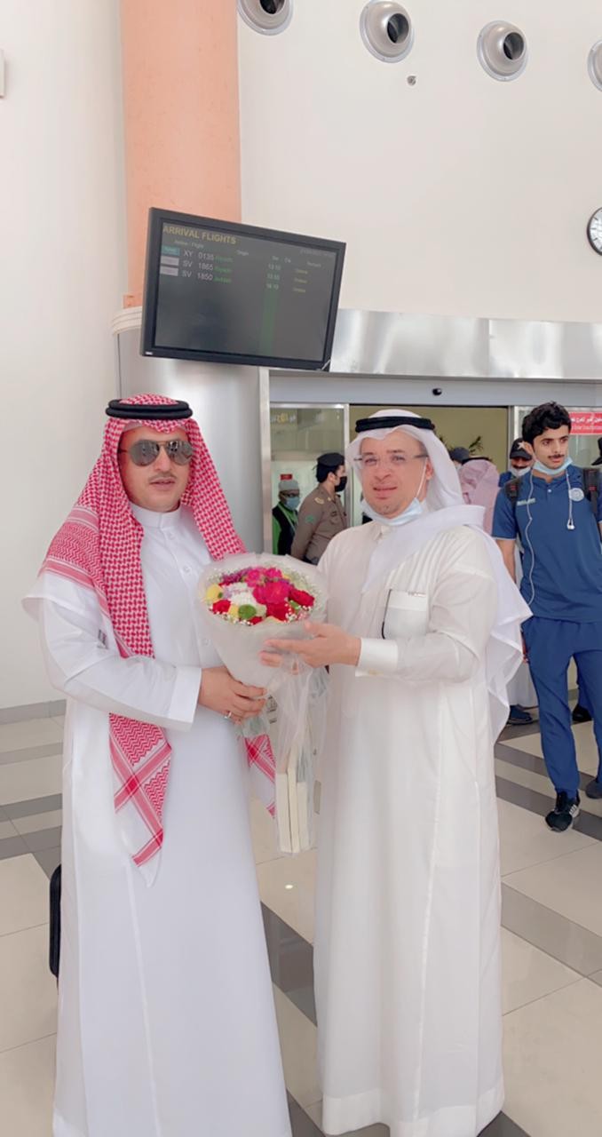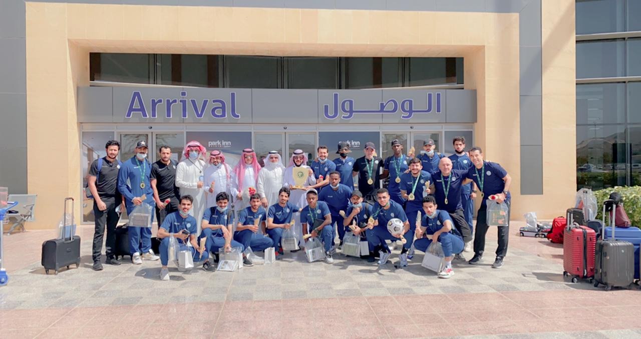 استقبل اليوم مدير وأعضاء النادي الثقافي الأدبي بنجران بعثة نادي الأخدود عند وصولها إلى مطار منطقة نجران بعد تحقيق درع دوري الدرجة الثانية والصعود إلى دوري الأمير محمد بن سلمان للدرجة الأولى للمحترفين بالورود ومطبوعات النادي الثقافي الأدبي .