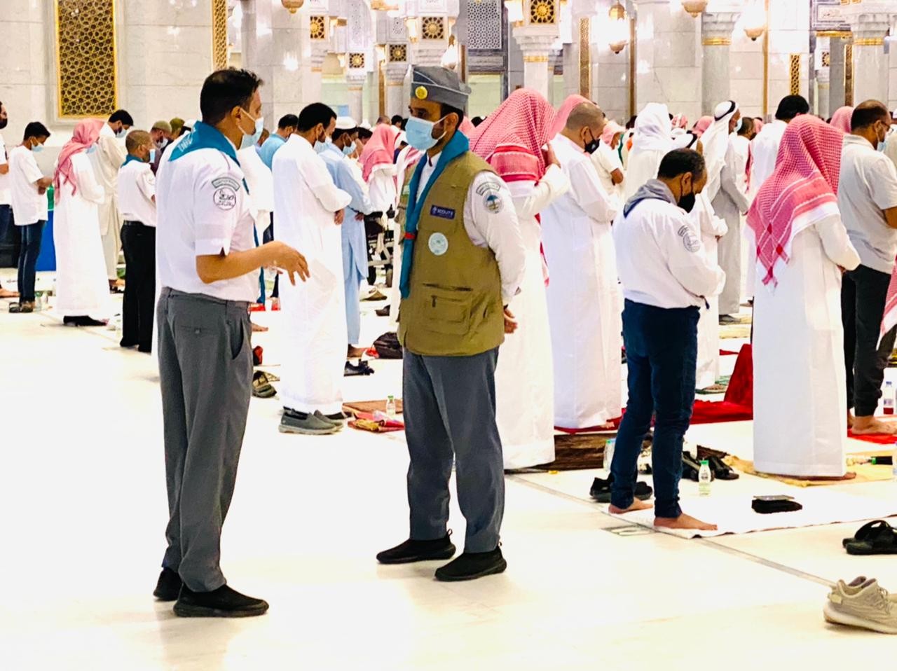 وأوضح رئيس قسم النشاط الكشفي بالإدارة زياد قدير ، أن المركز جند أكثر من 50 قائداً كشفياً يومياً ، يباشرون عملهم التطوعي قبيل صلاة العشاء من كل يوم، إلى مابعد صلاة التراويح بنصف ساعة ، حيث يساهمون في تنظيم دخول المصلين والمعتمرين وتوجيههم للمصليات بتوسعة الملك عبدالله ،وفي تنظيم عملية الخروج  والمساهمة في  تطبيق الإجراءات والاحترازات ضد فيروس كورونا التي تنفذها الرئاسة العامة لشؤون المسجد الحرام والمسجد النبوي .