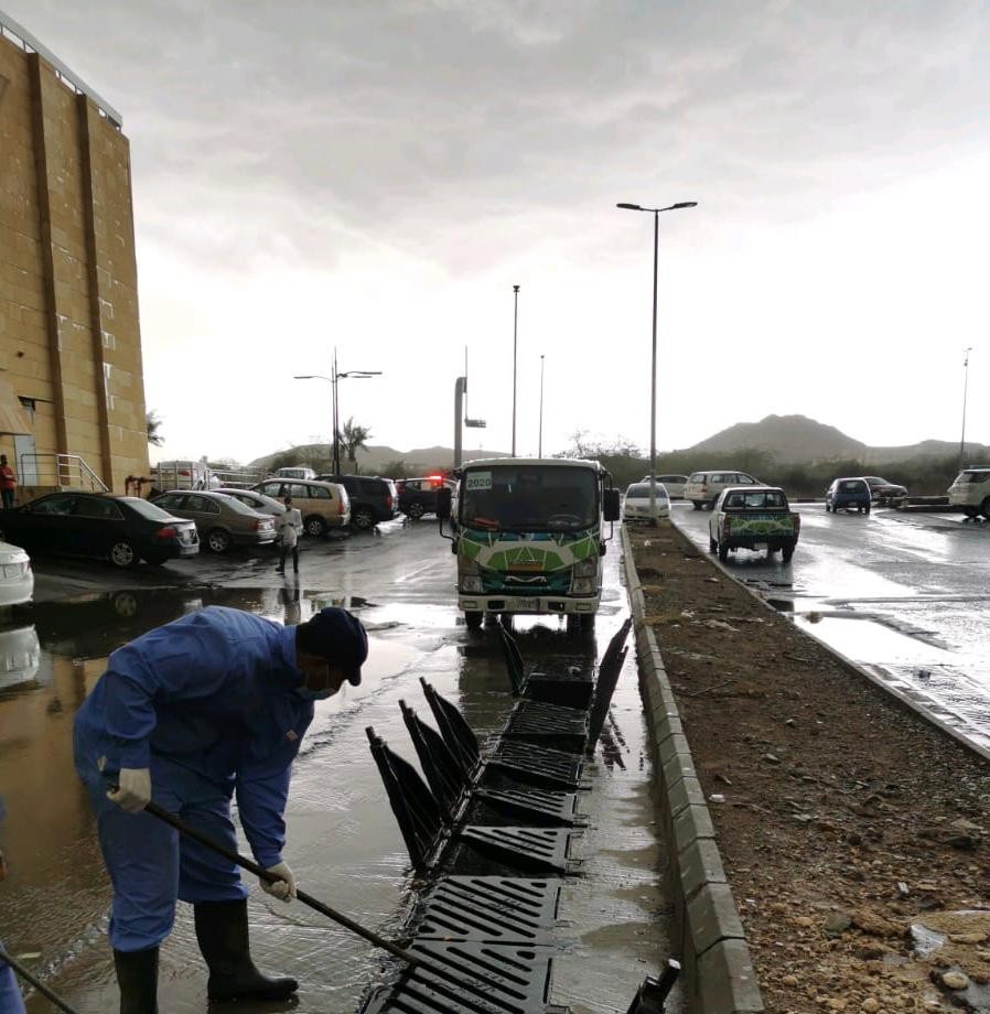 استنفرت أمانة العاصمة المقدسة وبلدياتها الفرعية وإداراتها العامة جهودها وطاقاتها البشرية والفنيّة على أثر الحالة المطرية التي وقعت "يوم الثلاثاء " على العاصمة المقدسة وضواحيها، ونفّذت الإدارة العامة للنظافة والإدارة العامة للسيول خطتها للتعامل بشكل مباشر في مواقع تجمعات مياه الأمطار ومعالجة آثارها بالشوارع والأحياء السكنية بالتنسيق مع الجهات ذات العلاقة، حيث تم إزالة المُخلّفات حول مواقع تصريف المياه ورفع مُخلّفات الأشجار المتساقطة في بعض المواقع المتفرقة بالعاصمة المقدسة