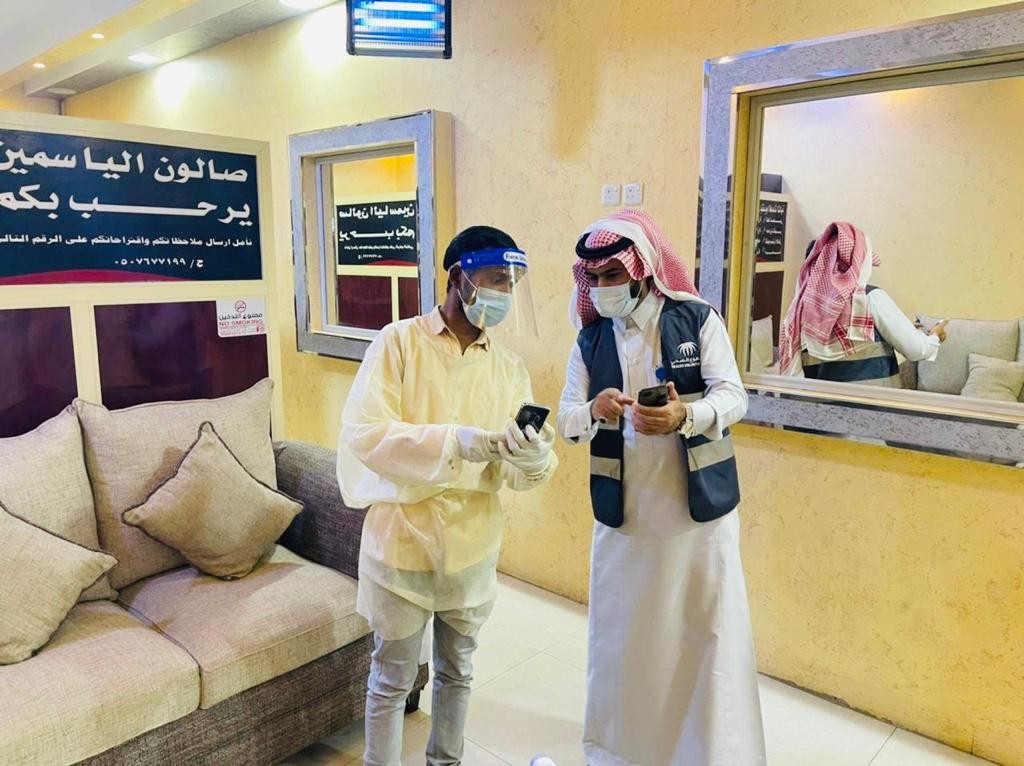 حيث عرفت الفرق التطوعية الزوار من مواطنين ومقيمين على تطبيق صحتي وضرورة أخذ لقاح فيروس كورونا "كوفيد-١٩".