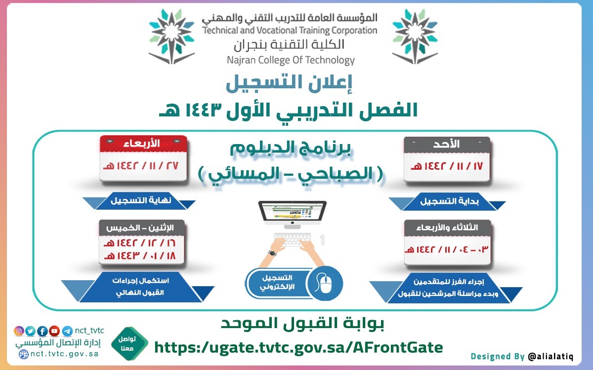 الكلية التقنية بنجران تعلن مواعيد القبول والتسجيل لبرنامجي الدبلوم والبكالوريوس