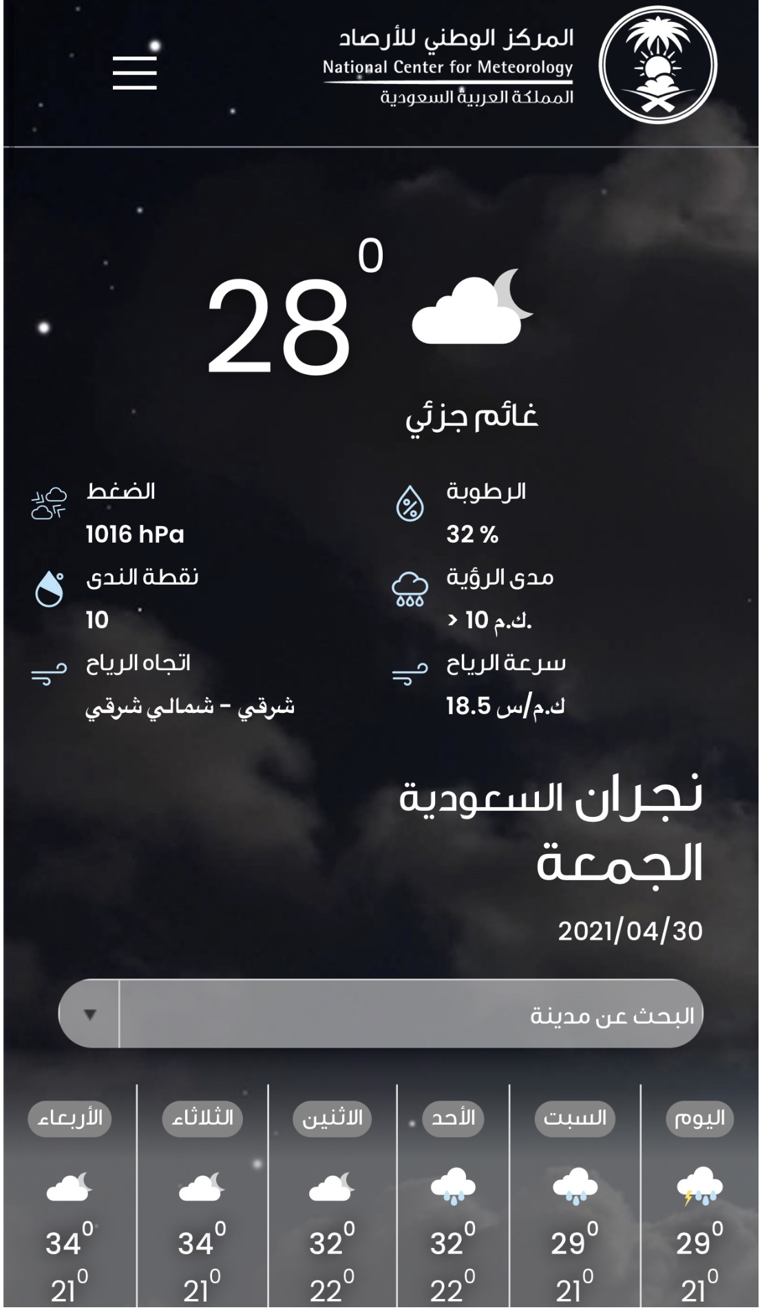 أعلن المركز الوطني للأرصاد على أن الفرصة لازالت مهيأة لهطول أمطار رعدية، مصحوبة غالباً بزخات من البرد وتيارات هابطة نشطة السرعة "قد تصل سرعة الرياح معها إلى 45كم/س أو أكثر" مما قد يؤدي إلى إثارة الأتربة والغبار .
