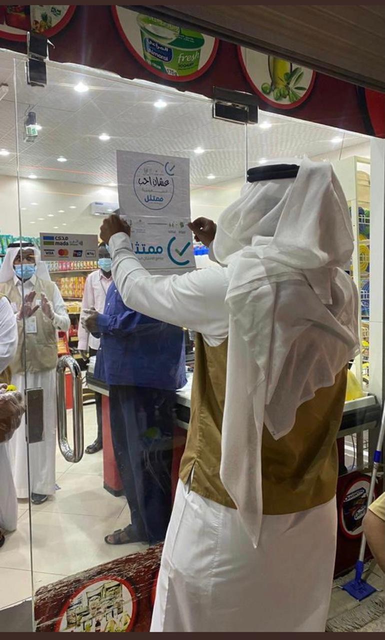 شارك الحملة الرقابة الصحية بالبلدية وبإشراف مباشر من قبل رئيس بلدية خباش المهندس يوسف بن حسن آل هتيلة ، حيث وجه المراقبين إلى ضرورة تكثيف الجولات أثناء إجازة عيد الفطر المبارك للتأكد من الامتثال لتطبيق الإجراءات الاحترازية وقواعد السلامة الصادرة من وزارة الصحة للحد من انتشار وباء كورونا كوفيد-19.