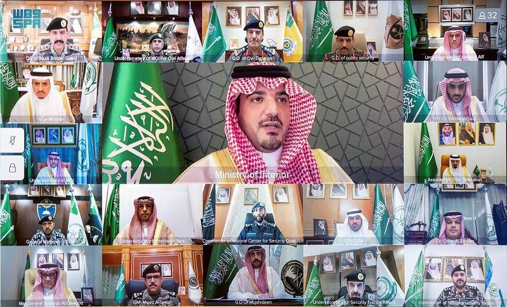 وأعرب، خلال لقائه كبار المسؤولين في وزارة الداخلية وقادة القطاعات الأمنية، عبر الاتصال المرئي، عن اعتزازه بالجهود التي بذلها رجال الأمن في خدمة المعتمرين والزوار.