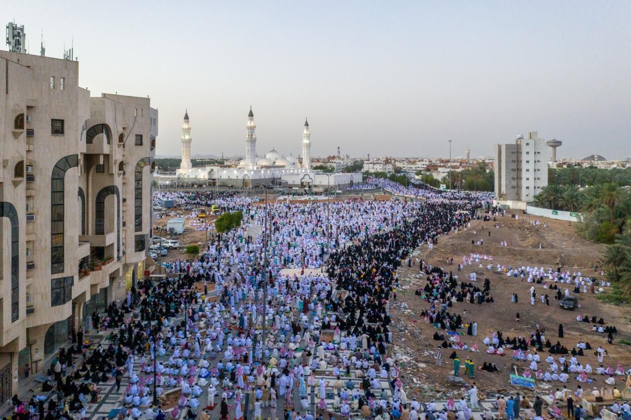 توافد جموع المصليين لآداء صلاة عيد الفطر المبارك  بمسجد قباء ولأول مرة في التاريخ - والله أعلم - تجاوزت صفوف المصلين في صلاة عيد الفطر بمسجد قباء لهذا العام 1442 هـ إلى مسجد الجمعة، وأصبحت صفوف الصلاة على بعد أكثر من كيلومتر حيث أن المسافة بين قباء ومسجد الجمعة 900 متر وتجاوزت الصفوف مسجد الجمعة بمسافة لا بأس بها.