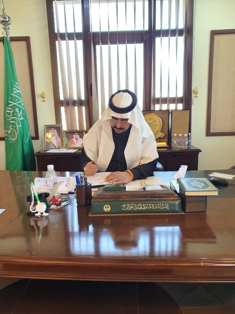قدم محافظ خباش الاستاذ طلال بن درزي العردان أسمى آيات التهاني والتبريكات بمناسبة عيد الفطر المبارك لمقام خادم الحرمين الشريفين الملك سلمان بن عبدالعزيز ال سعود وإلى ولي العهد صاحب السمو الملكي الأمير محمد بن سلمان بن عبد العزيز ولي العهد نائب رئيس مجلس الوزراء ووزير الدفاع وإلى صاحب السمو الملكي الأمير عبد العزيز بن سعود بن نايف وزير الداخلية ولى صاحب السمو الأمير جلوي بن عبد العزيز بن مساعد أمير منطقة نجران والى سمو نائبه صاحب السمو الملكي الأمير تركي بن هذلول بن عبدالعزيز حفظهم الله ورعاهم أعاده الله عليهم بالصحة والسلامة اعوامآ مديده كما اهنئ جنودنا البواسل في وطننا الحبيب و الشعب السعودي الوفي و الامة العربية والاسلامية وكل عام وانتم بخير.