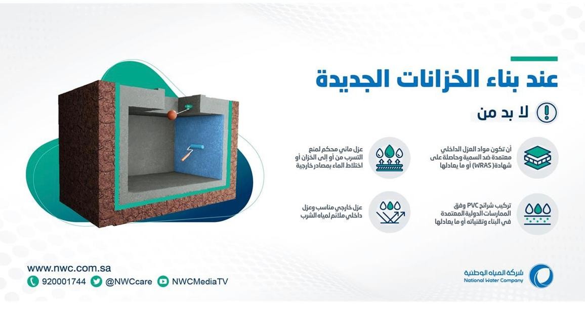 نصحت شركة المياه الوطنية، بضرورة توفر واعتماد 4 اشتراطات عند بناء خزانات مياه أرضية جديدة.