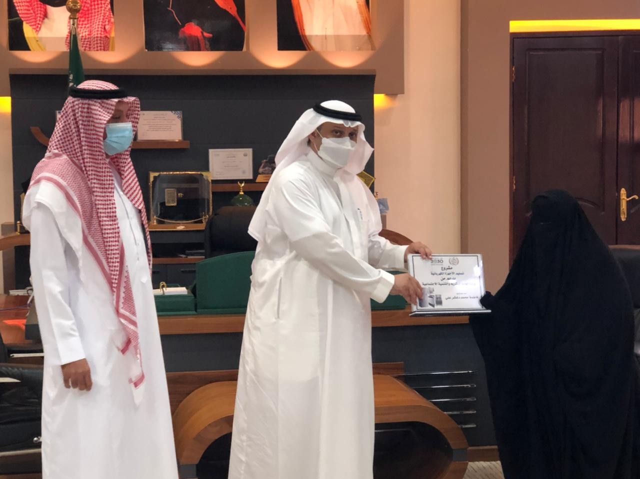محافظ أحد المسارحة يطلع على أعمال جمعية البر ويسلم المستفيدين .
