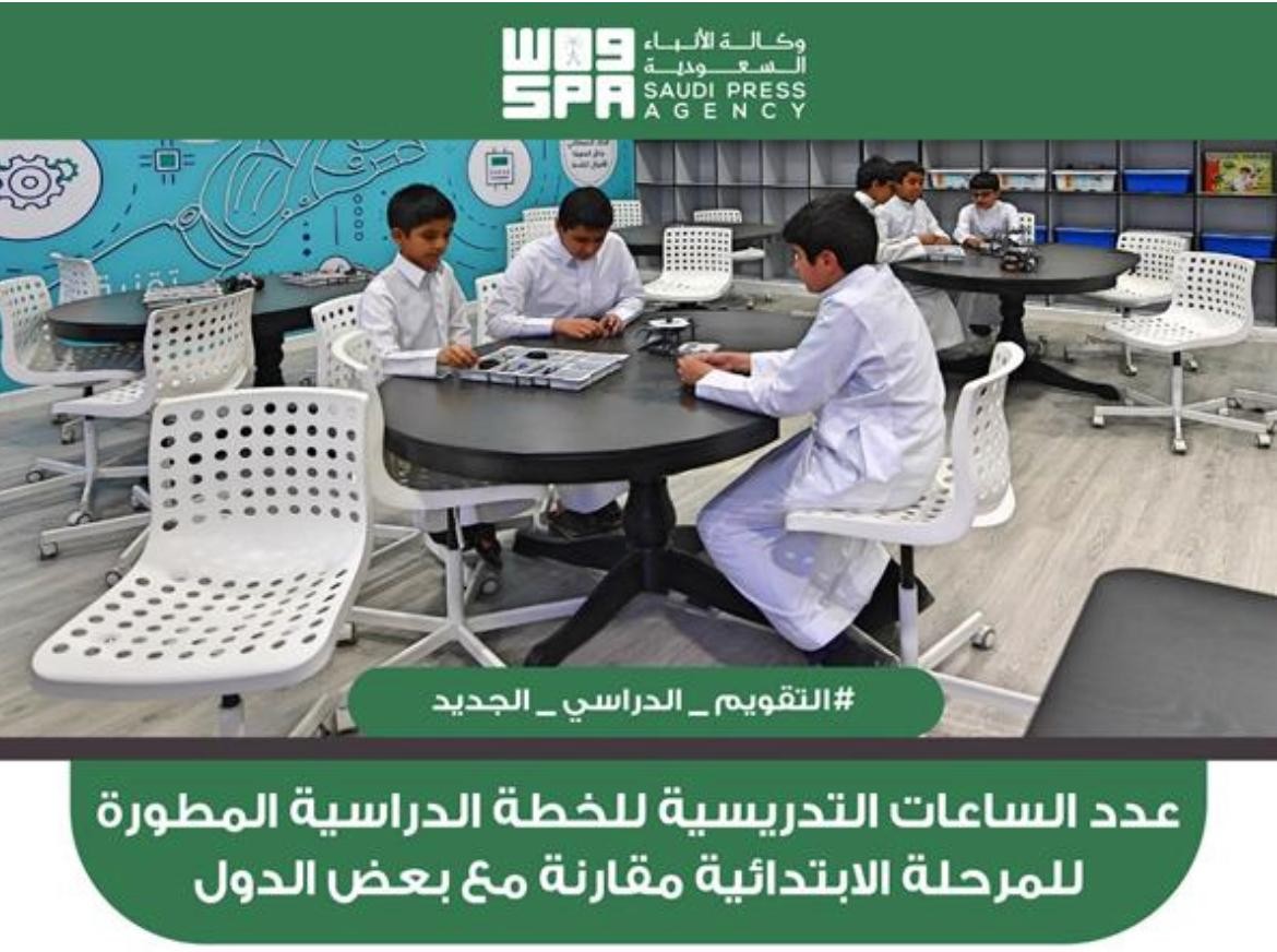 وأظهرت المقارنة ارتفاع عدد الساعات التدريسية في المرحلة الابتدائية بالسعودية سنوياً بعد خطة المطورة من 785 حصة إلى 961 حصة، كما ترتفع أيضًا إلى 1005 حصة بإضافة التعليم الإلكتروني.