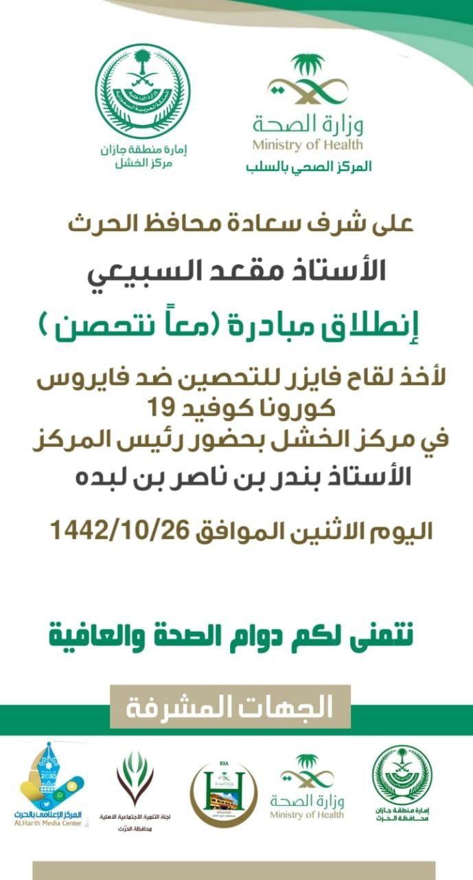 لوضع آلية التنفيذ وحصر جميع الراغبين في أخذ اللقاح من نوع (فايزر ) وعمل جدولة للمواعيد بالتعاون مع الفرق التطوعية والجهات ذات العلاقة وتم تحديد مقر تنفيذ المبادرة في مركز الرعاية الأولية بقرية السلب التابعة لمركز الخشل .