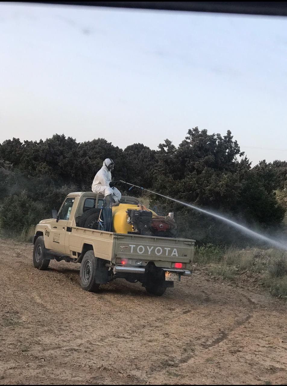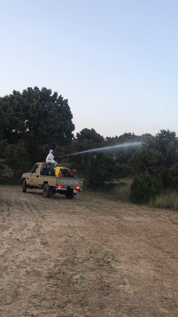 كما قامت فرق تابعة لمكتب الوزارة بخميس مشيط بأعمال مكافحة للجراد فجر امس الاول وذلك فور تلقي بلاغ عن وجود سرب من الجراد في بعض مزارع تندحة, وتواصل فرق البحث والتقصي التابعة لفرع وزارة البيئة والمياه والزراعة بمنطقة عسير عملها لرصد اسراب الجراد الصحراوي والقضاء عليه حيث اقامت غرفة عمليات خاصة تعمل على مدار الساعة, وجهزت كافة الامكانات للبحث والمكافحة السريعة, كما خصصت رقم لتلقي البلاغات عن طريق الواتس على الرقم (0530233560), وأهابت بمن يشاهد اسراب للجراد بسرعة تقديم البلاغ وتحديد المواقع.