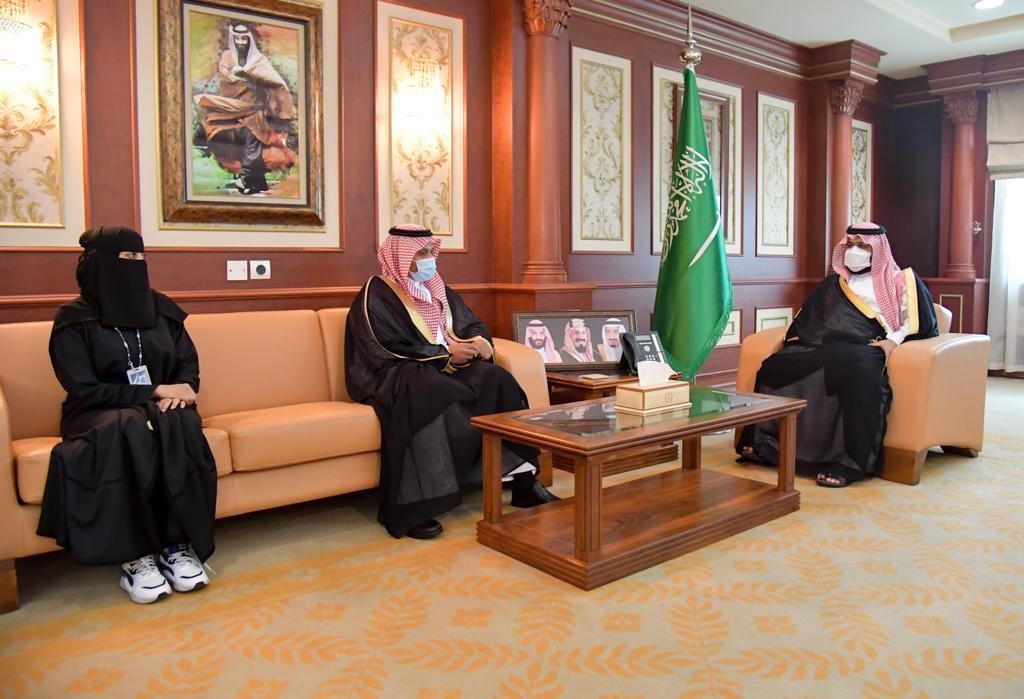 استقبل صاحب السمو الملكي الأمير محمد بن عبدالعزيز بن محمد بن عبدالعزيز نائب أمير منطقة جازان في مكتبه اليوم مدير تعليم جازان الدكتور إبراهيم أبوهادي النعمي ومدير تعليم صبيا الدكتور حسن بن محسن خرمي والطلاب والطالبات الفائزين على مستوى المملكة ضمن منافسات تحدي فيرست التقني 2021 للروبوت.