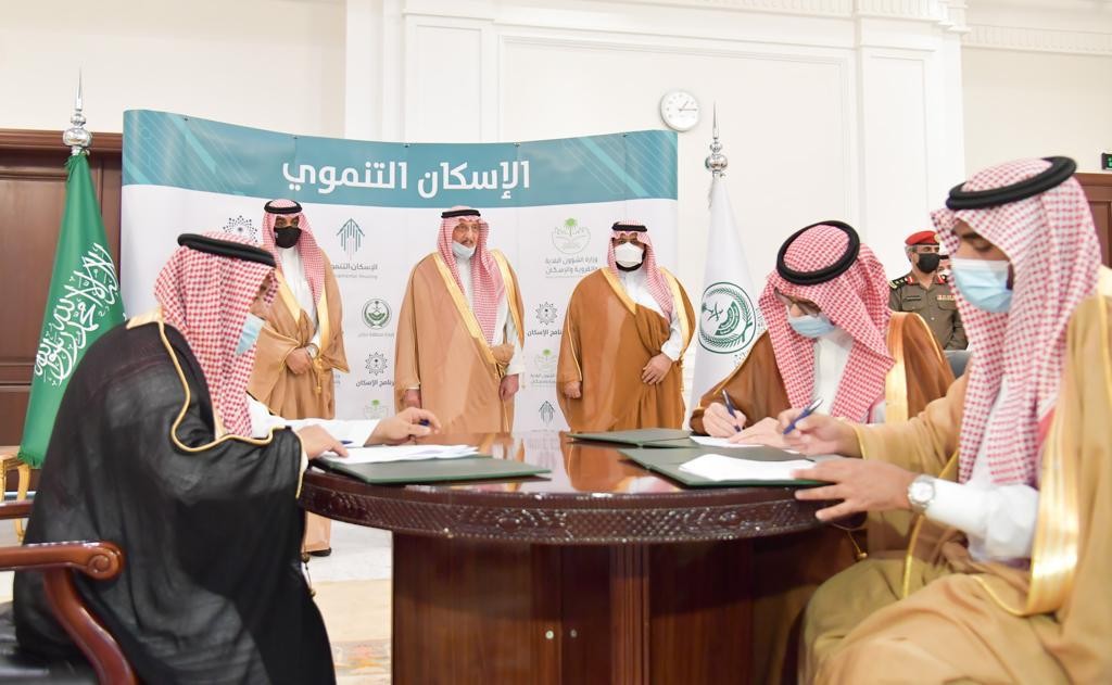 كما رعى سموّ الأمير محمد بن ناصر خلال اللقاء توقيع عدة اتفاقات في قطاع الإسكان التنموي لتنفيذ البنية التحتية لمخططات الوزارة البالغة 1198 وحدة سكنية مع عدد من المقاولين المؤهلين بقيمة إجمالية بلغت 430 مليون ريال، وسلم سموه عددًا من الوحدات السكنية لمستفيدي برنامج "الإسكان التنموي" بجازان ، فيما كرم الجهات والجمعية المتعاونة في مجال الإسكان التنموي بالمنطقة ممن ساهموا في تسكين الاسر الأشد احتياجا بالمنطقة.