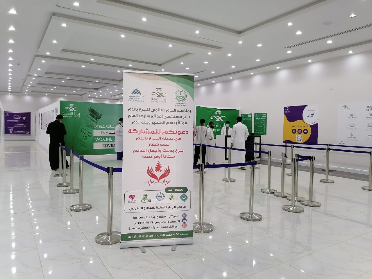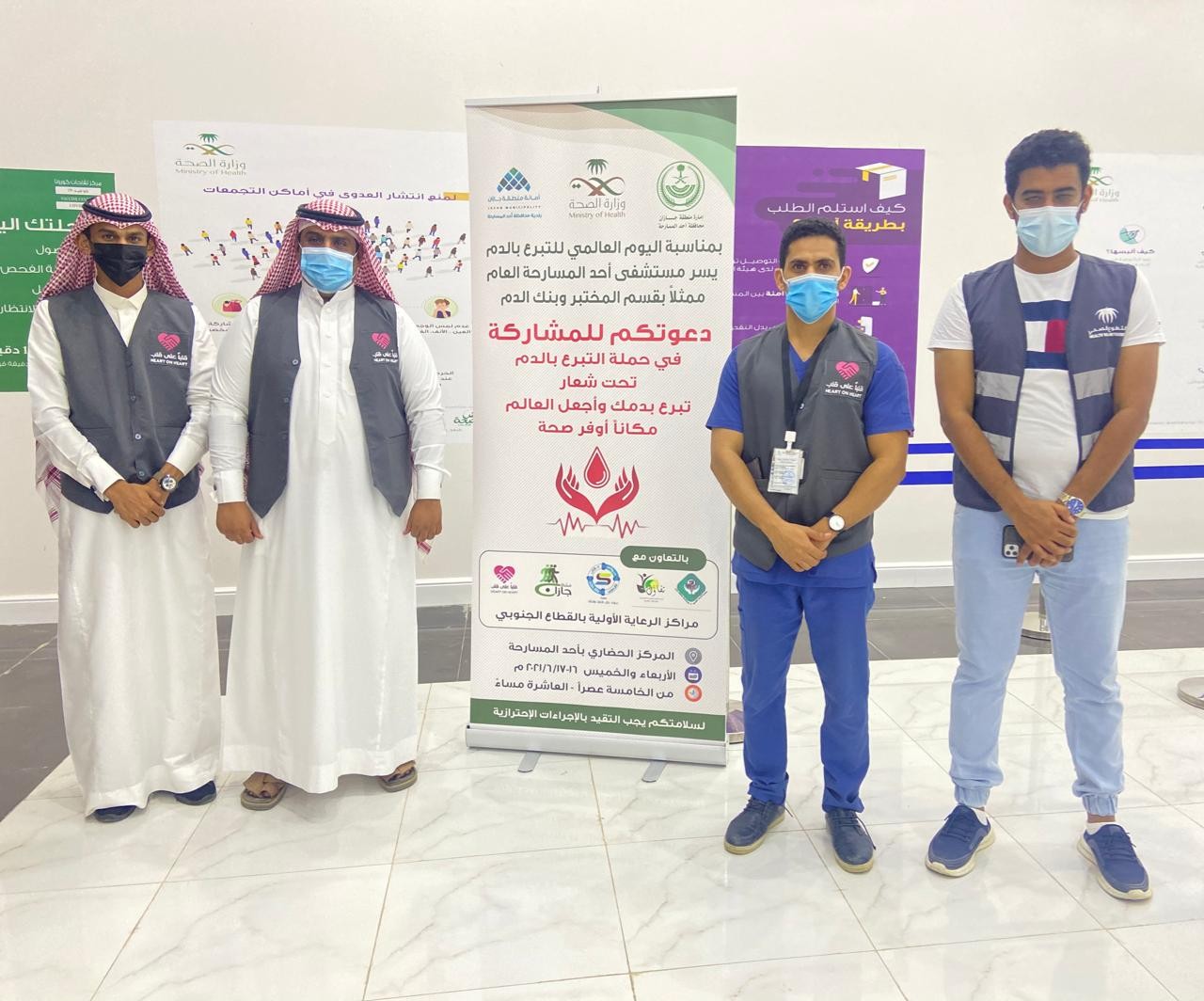 بمناسبة اليوم العالمي للتبرع بالدم تحت شعار تبرع بدمك وأجعل العالم مكانا أوفر صحة   أنطلقت مساء اليوم الأربعاء بالمركز الحضاري بأحد المسارحة حملة التبرع بالدم والتي ينظمها مستشفى أحد المسارحة العام ممثلا بقسم المختبر وبنك الدم وبمشاركة عدد من الفرق التطوعية التابعة لعدد من الجمعيات بالمنطقة.