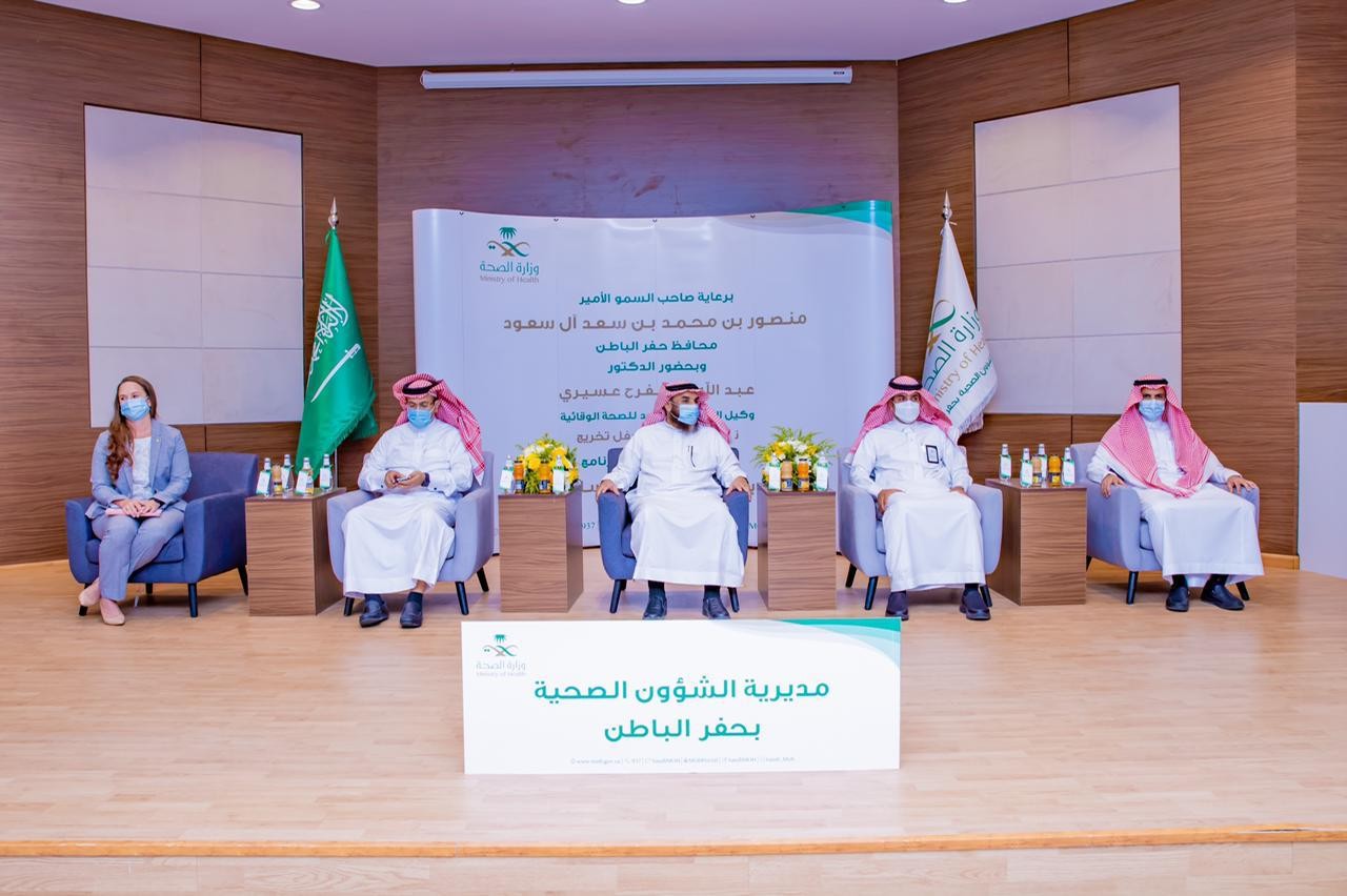 كرم وكيل وزارة الصحة المساعد للصحة الوقائية الدكتور عبد الله بن مفرح عسيري خريجي أول دفعة من "برنامج الوبائيات التطبيقية الأساسية" على مستوى المملكة والتي تم تنفيذها في مديرية الشؤون الصحية بحفرالباطن، برعاية صاحب السمو الأمير منصور بن محمد بن سعد آل سعود محافظ حفرالباطن وحضور المشرف العام على برنامج الوبائيات الحقلي الدكتور سامي بن سعيد المدرع، ومدير الشؤون الصحية بحفرالباطن ناصر بن راشد الصافي، ومدير فرع وزارة البيئة و الزراعة والمياه بحفر الباطن المهندس عبدالعزيز اليوسف، ونائب المشرف العام على برنامج الوبائيات الحقلي الدكتور عبد العزيز المشعل، والدكتورة جوانا جنيس ممثلة مراكز مكافحة الأمراض والوقاية منها في الولايات المتحدة الامريكية..