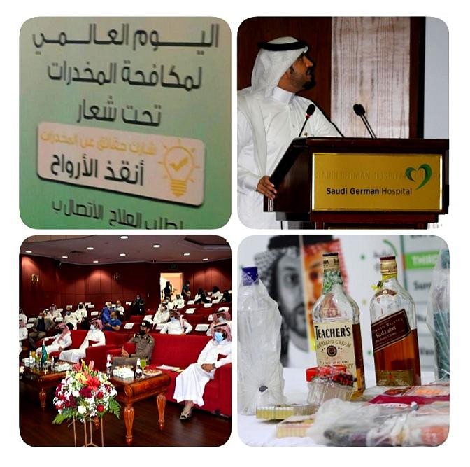 إنطلق اليوم العالمي لمكافحة المخدرات بمنطقة عسير على مسرح قاعة المستشفى السعودي الألماني وحيث إنطلقت الفاعلية بحفل خطابي حضره ممثلي الإدارة العامة لمكافحة المخدرات بالمنطقة ومجموعة من أطباء الصحة النفسية بمنطقة عسير وإدارة المستشفى السعودي الألماني ممثلة في المدير التنفيذي للمستشفى الدكتور علي بن علي.