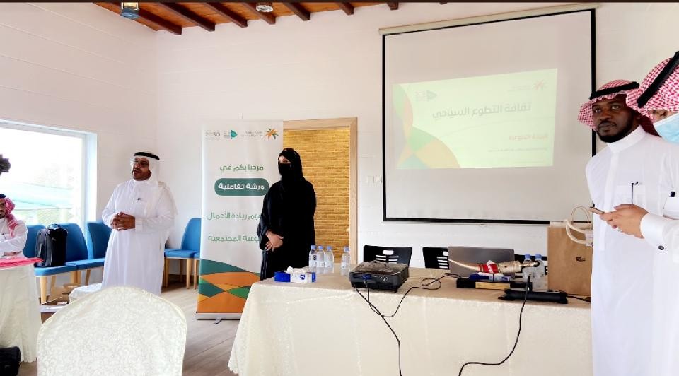 بمشاركة ٤٥ متطوع ومهتمين وعاملين بالقطاع السياحي أنطلقت ورشة "نشر ثقافة العمل التطوعي بالقطاع السياحي" في قرية بن عضوان السياحية في بللحمر شمال أبها وشارك مدير عام إدارة التطوع بوزارة الموارد البشرية والتنمية الاجتماعية مشاعل آل مبارك ورئيس مجلس إدارة جمعية الإعلام السياحي خالد آل دغيم في الورشة الأولى حيث أوضحت آل مبارك إن العمل التطوعي يحتاج لفئات خاصة من الناس، لديها استعدادات معينة للقيام بأدوار مجتمعية على النحو الذي تحبه وترتضيه وتحلم به لمجتمعها، وتسعى لصناعته بأيادي مصرة على البذل والعطاء.