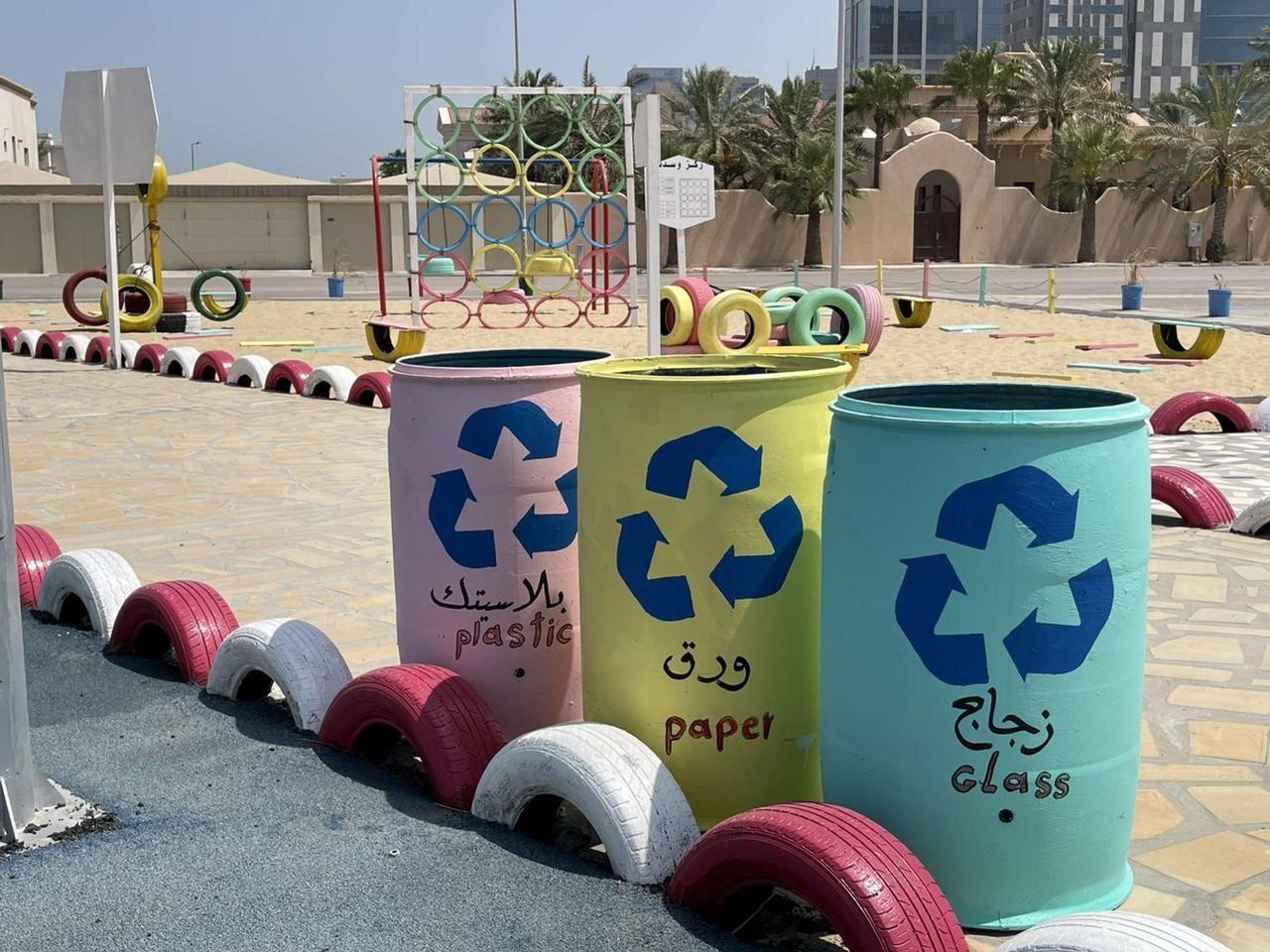 وأضاف المهندس سلطان الزايدي أن حديقة التدوير التي تم انشاؤها تأتي على مساحة تزيد عن 1800 متر مربع وتحتوي على ألعاب معاد تدويرها من اطارات السيارات وبعض الأجزاء الخشبية ومشايات من مخلفات الرخام والسيراميك وبعض الأحجار الموزعة لتشكل حديقة تكتمل فيها كل العناصر التي شكلت لوحة فنية بجمال محتوياتها وطريقة تصميمها، كما تحتوي على جلسات مظللة من بقايا سعف النخيل وطاولات خشبية، وحاويات تدوير " بلاستيك – زجاج – ورق " ، وأعمدة إنارة بالطاقة الشمسية، وزراعة أشجار بأحواض علب الدهانات والحاويات البلاستيكية وعربات اليد، وطاولة ألعاب تنس مصنوعة من بقايا حاوية، فيما تم استحداث أرضية من المطاط بمساحة 600م2 تحتوي على رسومات أرضية بأشكال تفاعلية.