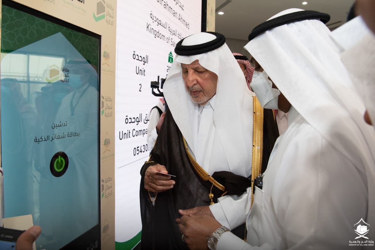 شهد مستشار خادم الحرمين الشريفين أمير منطقة مكة المكرمة رئيس لجنة الحج المركزية صاحب السمو الملكي الأمير خالد الفيصل، بحضور نائبه صاحب السمو الملكي الأمير بدر بن سلطان، إصدار أول بطاقة حج ذكية لموسم حج هذا العام 1442هــ، جاء ذلك لدى زيارة سموه التفقدية للمشاعر المقدسة للوقوف على جاهزية المرافق لاستقبال ضيوف الرحمن، في وقتٍ سوف يتم فيه ولأول مرة تسخير التقنية لخدمة الحجيج طيلة رحلتهم الإيمانية.