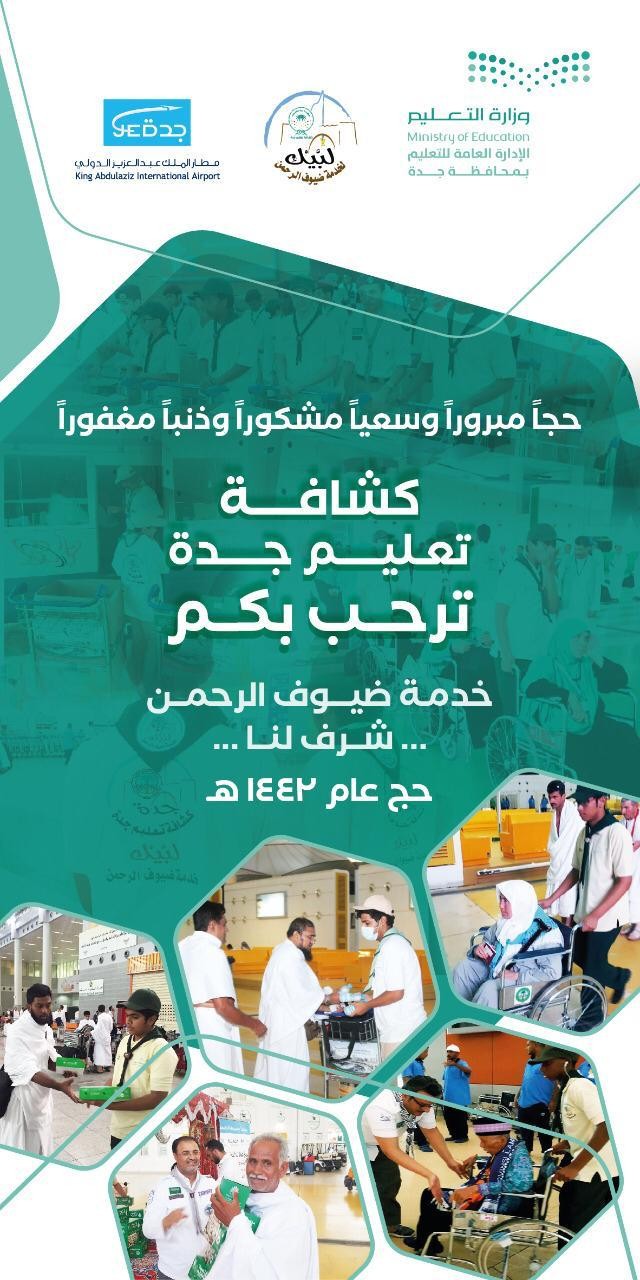 تشارك كشافة تعليم جدة في خدمة حجاج بيت الله الحرام، في مطار الملك عبدالعزيز الدولي، ضمن مبادرة المشروع الكشفي التطوعي " لبَّيك " لخدمة ضيوف الرحمن، جنباً إلى جنب مع مطار الملك عبدالعزير الدولي وكافة الجهات الحكومية والخاصة المشاركة في خدمة ضيوف الرحمن، وذلك بتواجد 30 قائداً كشفياً من منسوبي كشافة تعليم جدة في الصالة رقم 1 لتقديم العون والمساعدة لكافة الحجاج القادمين من خلال الإرشاد والمساعدة حتى وصولهم إلى الحافلات ومحطة القطار ووسائل المواصلات المختلفة التي يستقلونها للتوجه إلى مكة المكرمة.