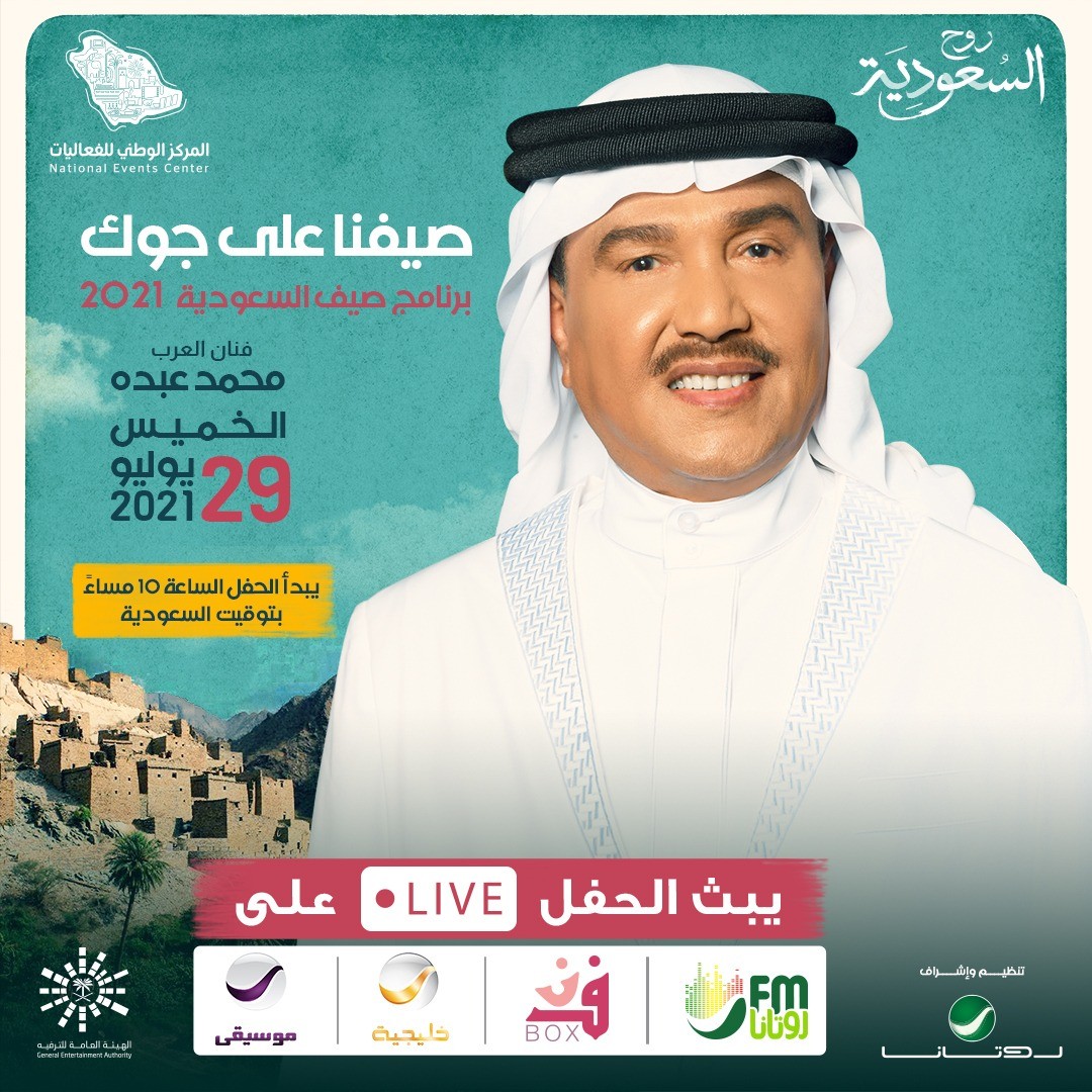 الحفل الاول سيقام تاريخ يوم الخميس 29 يوليو 2021 على مسرح "القرية التراثية بمراوة" في الباحة، ويحيه "فنان العرب" محمد عبده. اما الحفل الثاني سيقام تاريخ يوم الجمعة 30 يوليو 2021 على مسرح "طلال مداح المفتاحة" في أبها، ويحيه "برنس الغناء" ماجد المهندس.
