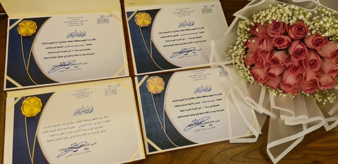 تعليم الطائف يكرم الطالبات الحاصلات على درجة 100 و 99 في اختبار القدرات العامة