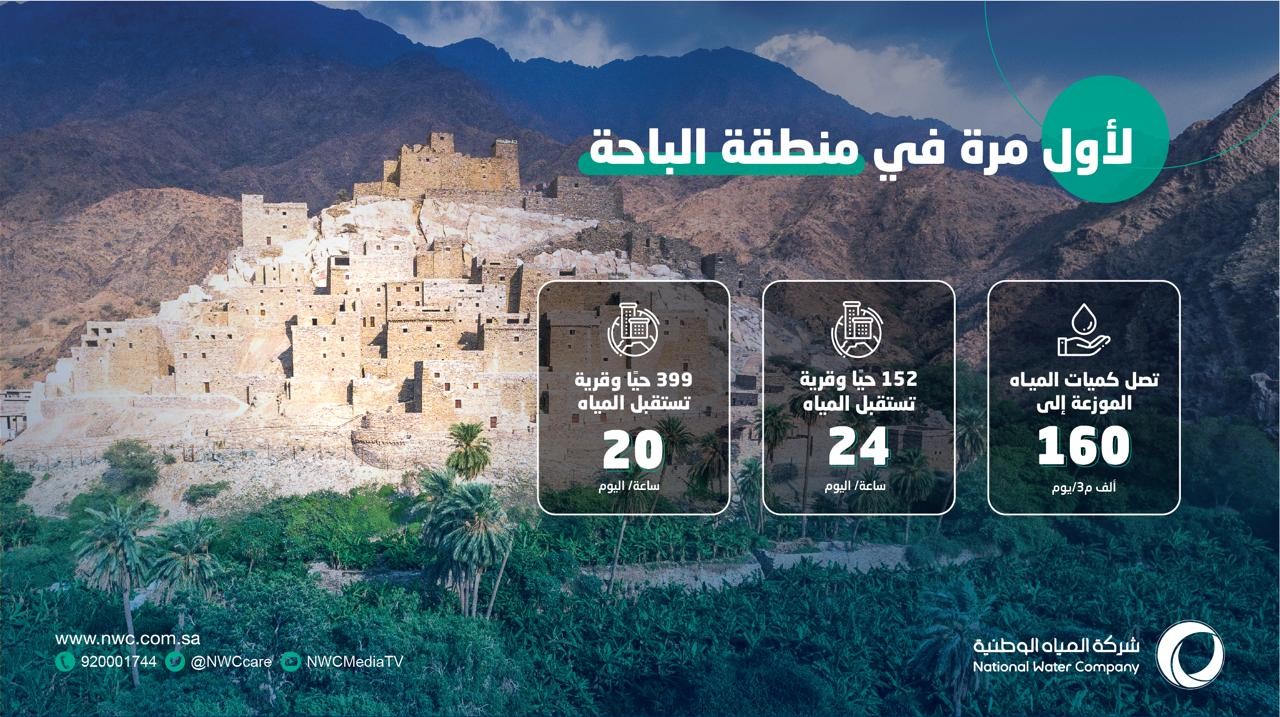 لأول مرة (399) حي وقرية في منطقة الباحة تستقبل الضخ 20 ساعة في اليوم