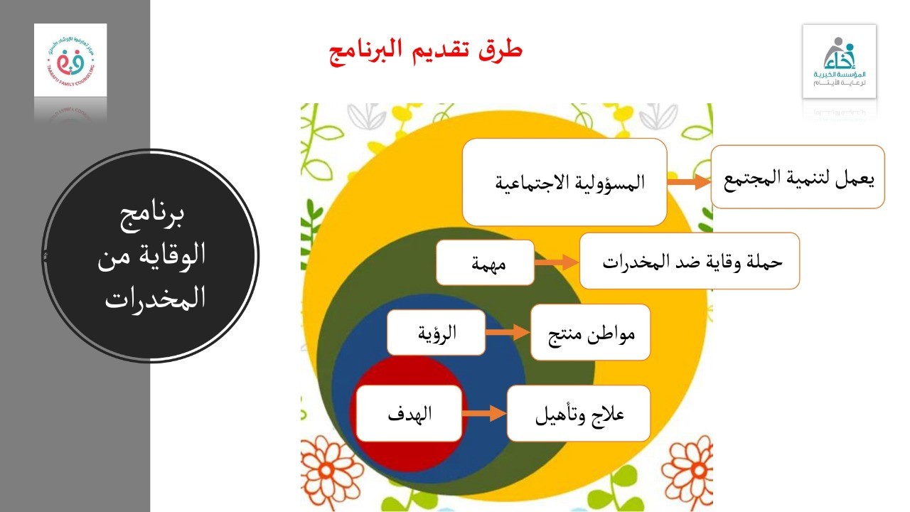 أطلقت المؤسسة الخيرية لرعاية الأيتام "إخاء" فعاليات برنامج "صحتي حياتي" للوقاية من المخدرات؛ بهدف التوعية من أضرار المخدرات، وكيفية الوقاية منها والذي ينفذه مركز تعارفوا للإرشاد الأسري .