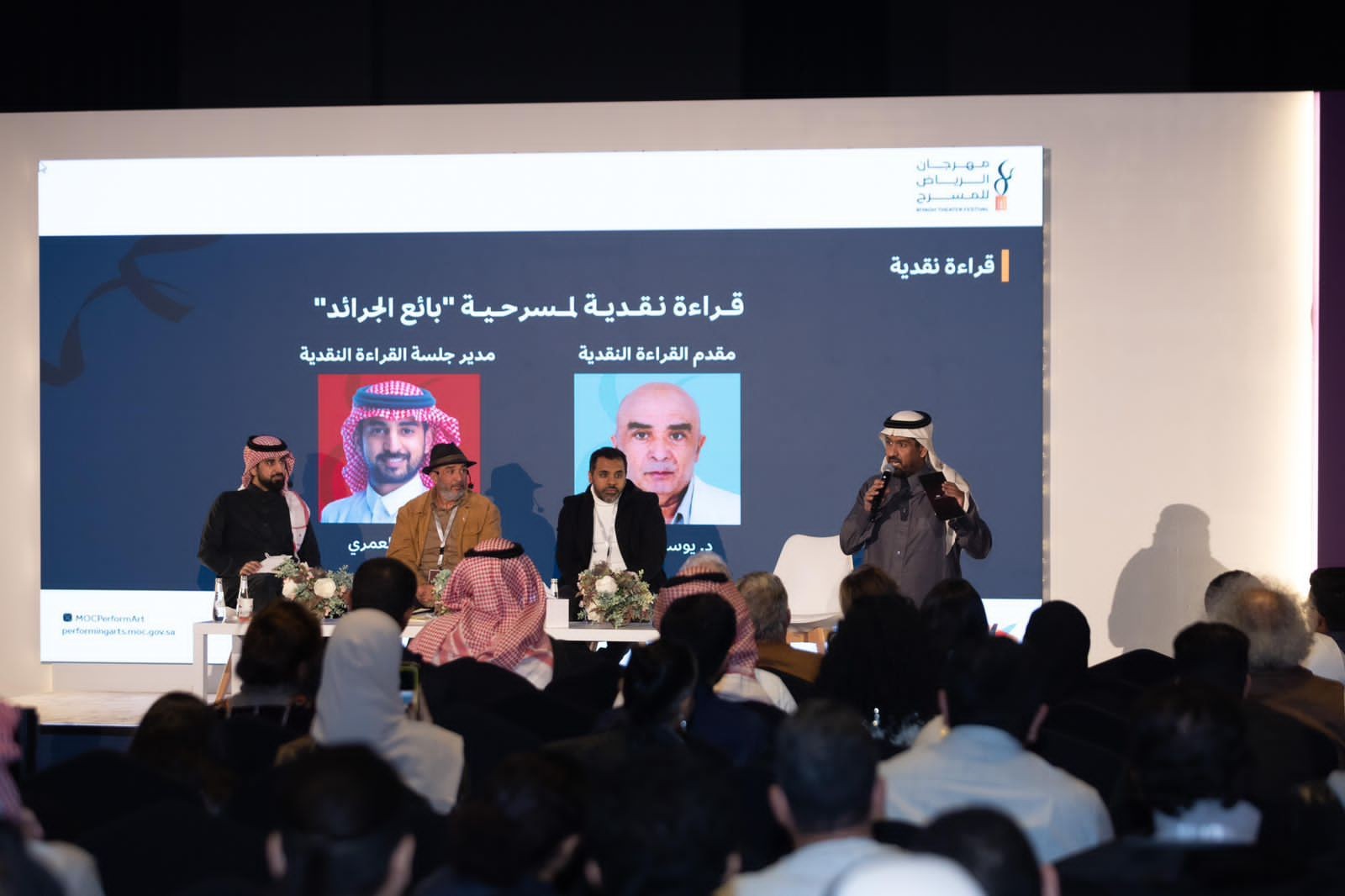 استضاف مهرجان الرياض للمسرح، في دورته الأولى، الناقد المسرحي الدكتور يوسف البحري، للتعليق في قراءة نقدية على مسرحية "بائع الجرائد" من تأليف وإخراج فهد الدوسري، بمشاركة فرقة فن بوكس.