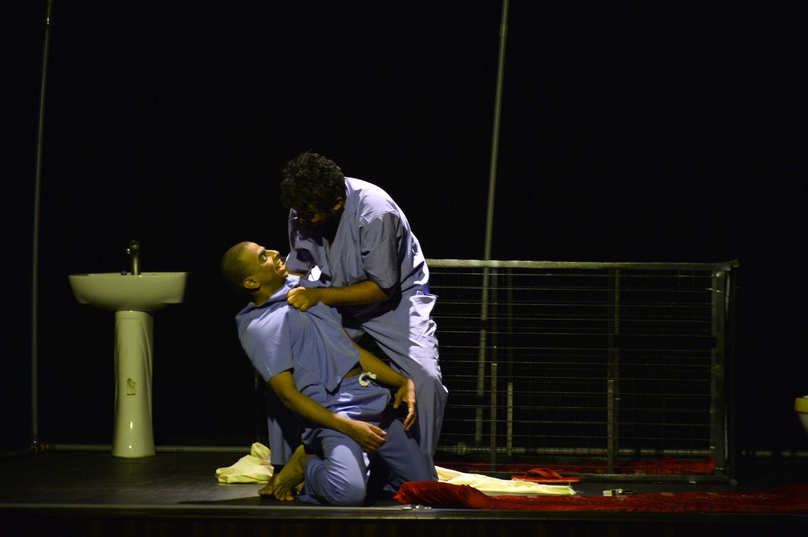 تميز العرض بأداء مميز للممثلين عاصم عقيل وحسن منصور، اللذين قدما شخصيتين مشحونتين بالتوتر الداخلي والانفعالات العميقة، حيث نجحا في تجسيد رحلة الغوص في أعماق النفس بإتقان جعل الجمهور ينسى أنه أمام عرض تمثيلي. وقد ساهمت التفاصيل التقنية من إضاءة مشحونة بالتوتر، وصوتيات معبرة، وحركات مسرحية دقيقة في صناعة حالة فنية مكثفة، صيغت بإحكام لا يترك مجالاً للصدفة.