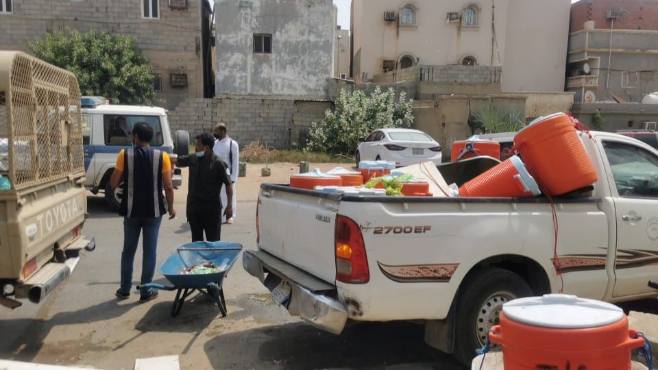 بمساندة الجهات الأمنية والجهات ذات العلاقة، تمكنت الفرق الرقابية في بلدية محافظة صبيا صباح اليوم الأحد، من مصادرة بسطات عشوائية لعمالة متجولة مخالفة، لا تتقيد بالإجراءات النظامية والاشتراطات الصحية، وذلك بعرض المواد الغذائية على العربات تكون معرضة لتقلبات الأجواء من الأتربة والغبار وافتقادها للحفظ والتخزين مما يشكل خطراً على صحة وسلامة المستهلك.
