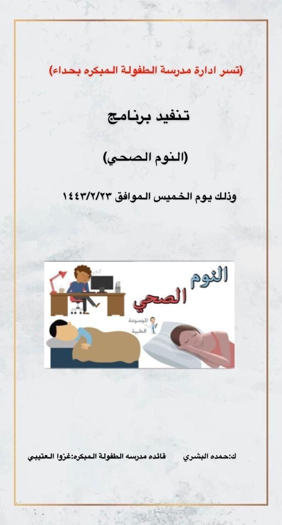 فعلت إدارة الطفولة المبكرة بالإدارة العامة للتعليم بمنطقة مكه المكرمة برنامج النوم الصحي وذلك بمقر روضة حداء الأولى، ابتدائية حداء الثالثة، ، نفذته معلمات الروضة.