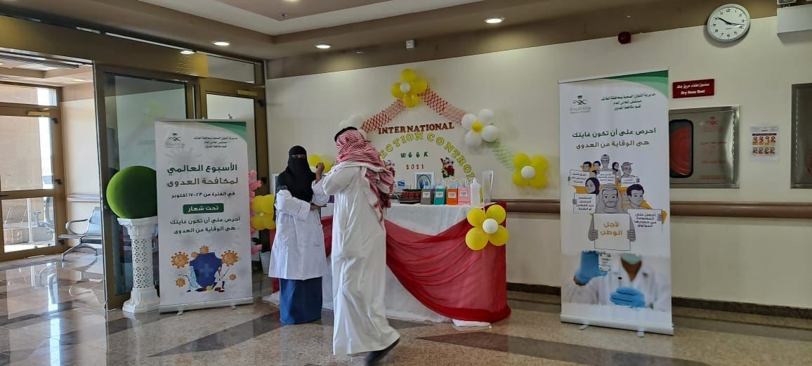 وقالت إدارة المستشفى أنهم ركزوا من خلال المعرض على توضيح أهمية تعقيم اليد للممارس الصحي حيث يعتبر هذا الاجراء خط الدفاع الاول للحماية من العدوى.