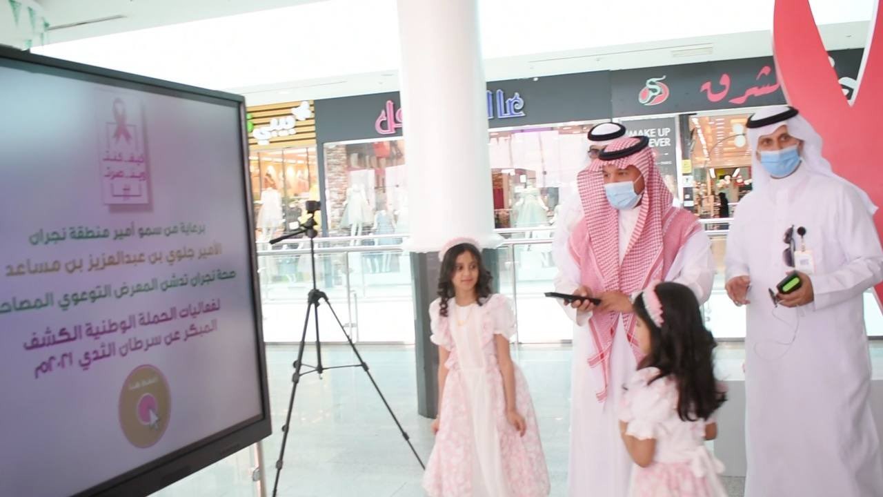برعاية صاحب السمو الأمير جلوي بن عبدالعزيز بن مساعد أمير منطقة نجران دشّنت صحة المنطقة اليوم ، فعاليات المعرض التوعوي المصاحب للحملة الوطنية للكشف المبكر عن سرطان الثدي بمركز نجران رويال سنتر ، بحضور مدير عام الشؤون الصحية بالمنطقة الدكتور إبراهيم بني هميم ، وتستمر الفعاليات حتى نهاية شهر أكتوبر الجاري .