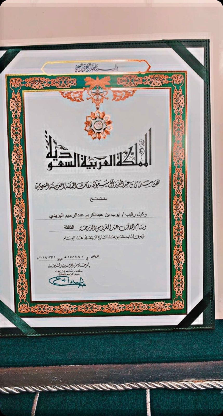 وسام الملك "عبدالعزيز "من الدرجة الثالثة للشهيد " أيوب اليزيدي "