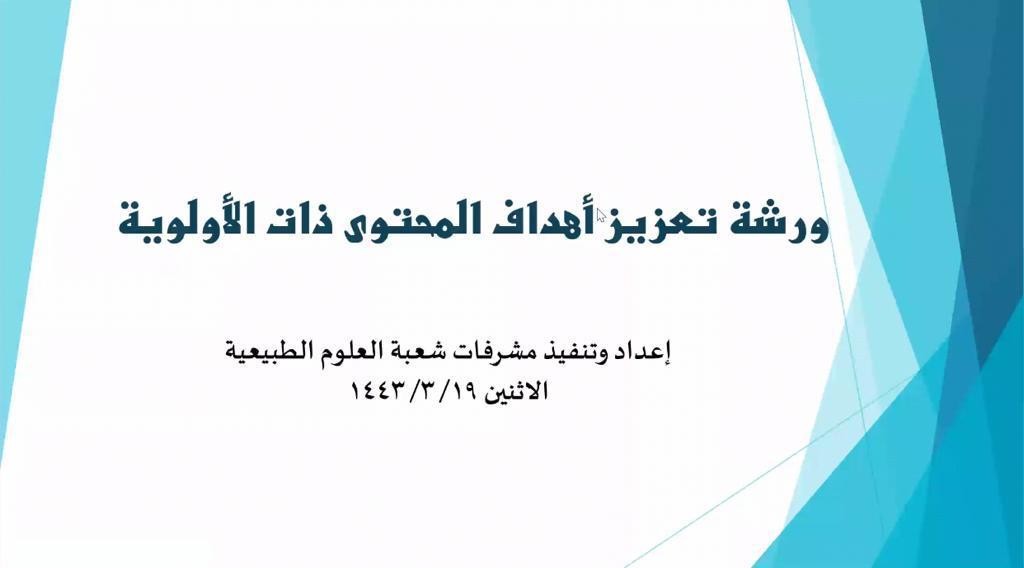 نفذت الإدارة العامة للتعليم بمنطقة مكة المكرمة ممثلة في مكتب تعليم شرق مكة ورشة تعزيز أهداف المحتوى ذات الأولوية يوم الاثنين الموافق١٤٤٣/٣/١٩هـ، نفذتها مشرفات شعبة العلوم الطبيعية تحت إشراف مديرة المكتب أمل باجابر.