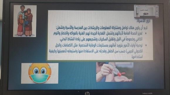 بدأ البرنامج بذكر الله والصلاة على رسول الله، ثم توالت محاور اللقاء والتي تعني بمجموعة من الأنشطة والمبادرات التوعوية التي تهدف إلى الارتقاء بالمعارف الصحية، وبناء الاتجاهات، وغرس السلوكيات الصحية في المجتمع المدرسي، حيث شمل توضيح القواعد وأساليب العودة الآمنة للمدارس، وبرنامج التطعيمات وطرق وأساليب مكافحة السمنة والتنمر، وأهمية النشاط البدني والصحة النفسية.